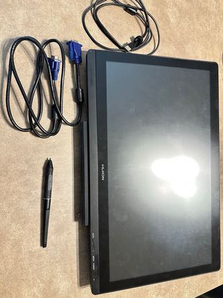 Tableta gráfica HUION Kamvas de 20 pulgadas. - Pantalla de gran tamaño para dibujar. - Incluye lápiz digital. - Cables de conexión incluidos.