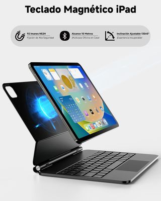 Teclado para iPad Air 13 Pulgadas (M2/M3) y iPad Pro 12.9 Pulgadas (3.a–6.a Gen) – QWERTY ES con Trackpad, Retroiluminación 7 Colores USB-C Funda Magnética – Negro X9 ..... Estable, elegante y adaptable: Con 92 imanes integrados, el iPad se mantiene firmemente sujeto y con estilo. El ángulo de soporte ajustable (hasta 130°) es perfecto para escribir, dibujar o ver vídeos. Ideal en casa, oficina o de viaje. 🔋 Carga rápida y batería de larga duración: Batería de 500 mAh: hasta 30 días en reposo o 18 horas de uso continuo. Se recarga en 2–3 horas por USB-C. Perfecto para usuarios intensivos.