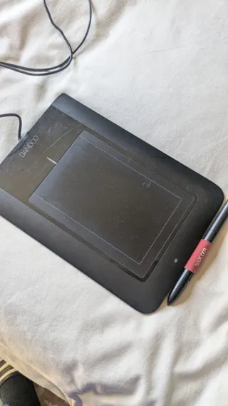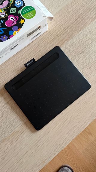 Tableta gráfica Wacom Intuos Comic. Para dibujar en el ordenador Windows o MacOs. Poco uso, viene con los recambios de puntas y con su cable USB. Viene con CD de drivers pero recomiendo descargarlos de la web de Wacom ya que están actualizados.