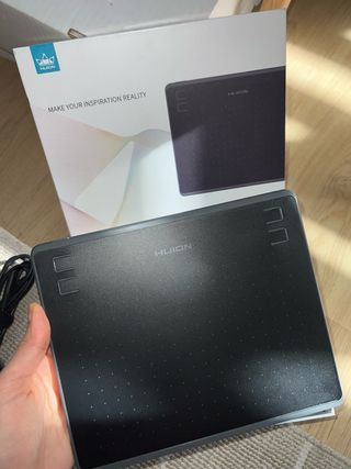 Tableta gráfica Huion para diseño y dibujo digital. Incluye lápiz óptico. - Superficie de dibujo amplia. - Botones personalizables en el lateral. - Lápiz sensible a la presión.