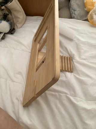 Soporte de bambú para iPad o tablet, ideal para dibujar de forma cómoda. Es ligero y fácil de transportar. Sin usar, lo vendo porque he comprado por error un tamaño distinto al que necesito ya que es para iPad normal y yo necesitaba el de 12.9. Lo vendo a la mitad de lo que me costó. - Fabricado en bambú. - Diseño elegante y funcional. - Se pliega para facilitar su almacenamiento.