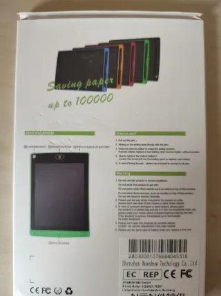 Tableta de escritura LCD de 6.5 pulgadas, ideal para el entretenimiento y el aprendizaje. - Diseño respetuoso con el medio ambiente, sin papel ni tiza. - Perfecta para pintar, dibujar, practicar y hacer cálculos. - Batería de larga duración (2 años). - Escritura fácil y borrado con un solo botón. - No radiante, segura para la vista. - Ahorra 3 árboles con su uso. - Solo una funciona correctamente; las otras 2, habría que cambiarles la pila