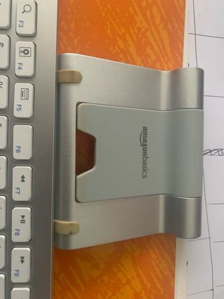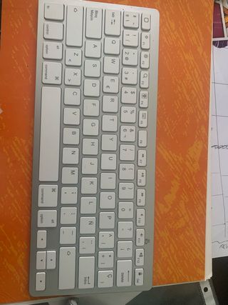 Teclado Bluetooth gris y blanco, portatil, tablet