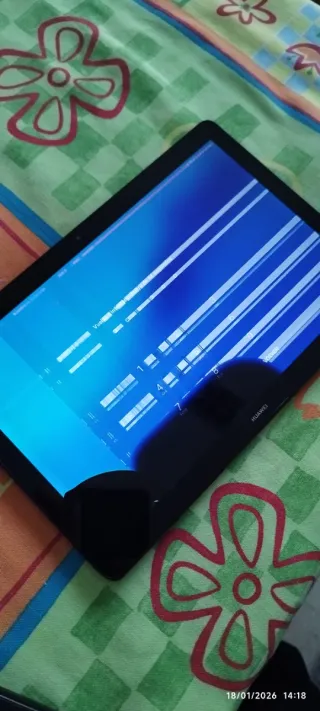 Tablet Huawei original, con pantalla grande y cuerpo metálico, ideal para consumo multimedia, estudiar, leer o uso doméstico. 🔹 Funciona correctamente 🔹 Pantalla amplia y cómoda 🔹 Diseño resistente 📌 Estado estético: Presenta rayones visibles en la pantalla y marcas de uso en la parte trasera, que NO afectan al funcionamiento (ver fotos). Ideal si buscas una tablet económica y funcional sin pagar de más.