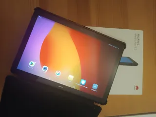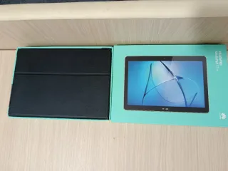 Tablet Huawei Mediapad T5 en color azul con teclado. Sin apenas uso. En perfectas condiciones. Se vende por falta de uso. - Pantalla de 10.1 pulgadas. - Incluye funda-teclado. - Conexión USB. - ROM: 32 GB - RAM: 3 GB