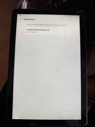 Tablet Huawei M5 Lite 10 en color gris. Ideal para uso diario. el cristal de la pantalla tiene dos rajas pero funciona perfectamente - Pantalla de 10.1 pulgadas. - Diseño delgado y ligero. - Conexión USB-C para carga.
