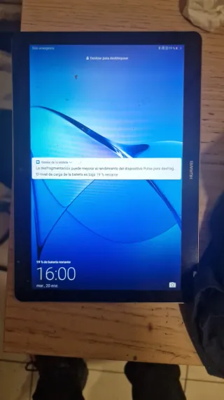 Tablet Huawei Mediapad T3 10 en color blanco. Funciona muy bien. - Pantalla de 10 pulgadas. - Conexión Wi-Fi. - Cámara frontal y trasera. -esta rota por el lado pero funciona igual de bien