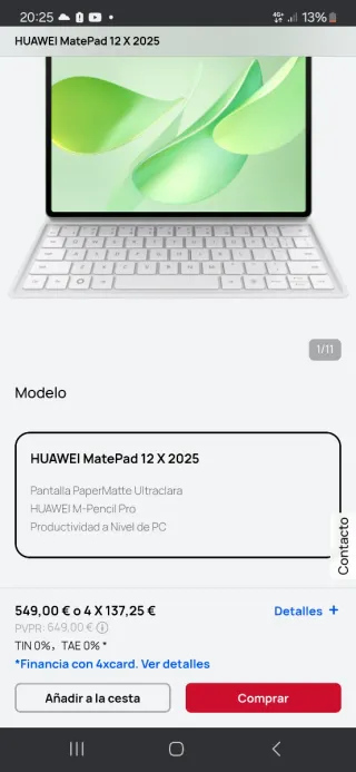 Tablet HUAWEI MatePad 12 X en su edición PaperMatte. - Modelo: BKY-W09 - ROM: 256GB - RAM: 12GB - Color: Greenery - Fabricado en China
