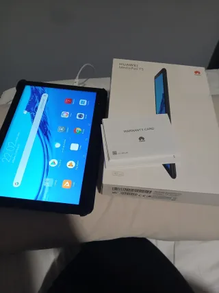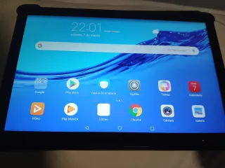 Vendo tablet Huawei MediaPad T5 en color negro. Está muy bien cuidada y funciona perfectamente. Es la versión de 3GB de RAM y 32GB de memoria, ideal para un uso fluido. Lo mejor de esta tablet: - Servicios de Google: Incluye Google Play Store oficial, por lo que puedes usar YouTube, Netflix, Gmail y todas tus apps sin problemas. - Pantalla FullHD de 10.1": Resolución 1920x1200, se ve genial para series y pelis. - Cuerpo metálico: Tacto premium y muy resistente. - Incluye cargador original - Regalo funda protectora: Tiene signos de uso y del paso del tiempo (desgaste estético), pero encaja perfectamente y protege la tablet.
