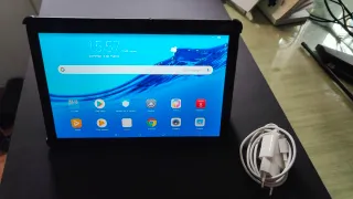 Tablet Huawei en color negro. - Pantalla de 10 pulgadas. - Conexión USB-C. Cargador y funda Ver fotos tiene una raja Funciona perfectamente