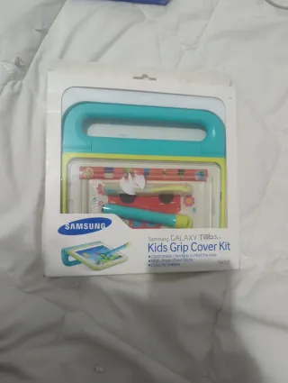 Kit de funda protectora para Samsung Galaxy Tab 3 Lite, diseñado para niños. - Funda con agarre cómodo para sujetar la tablet. - Soporte multiángulo integrado. - Incluye lápiz táctil (stylus) para niños. - Compatible con tablets de 7 pulgadas.