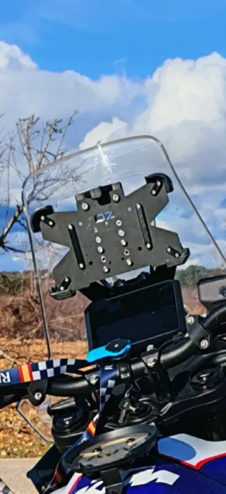 Soporte para moto diseñado para la tablet Samsung Galaxy Tab Active 3. Ajusta perfectamente sin ningún movimiento. Cierre con llave para quitar y poner la tablet sin problema o intentos de robo. Está hecha de metal y partes de impresión 3d. Está nueva, muy poco uso. Es válido para diferentes medidas de barra por si forma de anclaje.