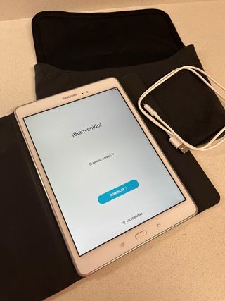 Tablet Samsung Galaxy Tab A (Modelo SM-P550), blanca, en estado impecable. Ha tenido muy poco uso y siempre ha estado protegida, por lo que no tiene ni un solo golpe, marca o rasguño. Es el modelo especial que incluye el S-Pen (lápiz óptico) integrado, ideal para tomar notas a mano, dibujar o estudiar cómodamente. Características principales: - Pantalla: 9.7 pulgadas (formato 4:3, perfecto para lectura y documentos). - S-Pen original: Funciona con niveles de presión para una escritura natural. - Estado: Estético 10/10 y funcionamiento perfecto. - Extras incluidos: Funda rígida de alta proteccióN, funda de tela y cable cargador.