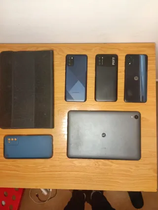 Vendo lote de dispositivos electrónicos. Incluye: • Oppo A9 2020 • Xiaomi Redmi 9A • Samsung Galaxy J5 • Samsung Galaxy A10 (pantalla dañada) • Samsung Galaxy Tab A7 La mayoría funcionan correctamente y están restaurados de fábrica. Incluyen cargadores y algunos con caja. Ideal para quien quiera varios dispositivos o para revender. Precio negociable si se recoge rápido.