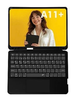 Funda con teclado para tablet Samsung Galaxy. - Compatible con Galaxy Tab A11 y A9 (11 pulgadas). - Incluye tarjeta de memoria micro SD de 32GB con adaptador. - Diseño elegante y funcional.