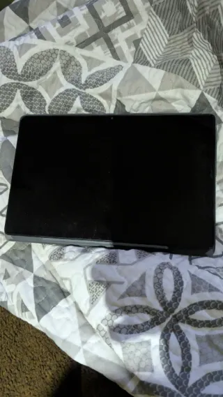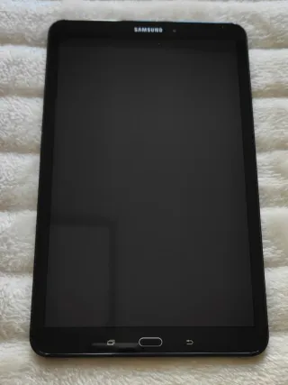 Tablet Samsung en color negro, ideal para repuestos o reparación.se apago y no se enciende ... soy cable de carga con la tablet - Pantalla negra.no rota - Marco plateado.