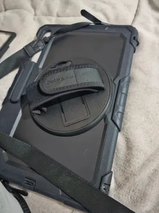 Funda protectora para tablet Samsung. - Diseño robusto y resistente. - Marco frontal con protector de pantalla. - Parte trasera con soporte integrado.