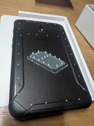 Tablet Samsung Galaxy Tab Active 2 en color negro. - Diseño robusto y duradero. - Pantalla de alta resolución. - Cámara trasera integrada.