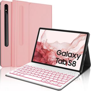 IVEOPPE Funda Teclado Samsung Tab S8 2022 / S7 2020 DE 11 pulgadas , Teclado Españaol retrouliminada de 7 colores Ñ Bluetooth para Samsung Galaxy Tab S8/S7 11" (SM-T870 / T875 /T878 / X700 / X706) de color rosa
