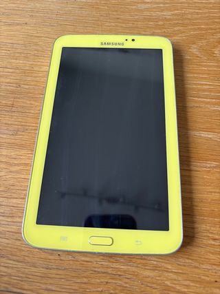 Tablet Samsung Galaxy Tab 3 Lite en color amarillo. Está en buenas condiciones, con algunas señales normales de uso. - Modelo: Galaxy Tab 3 Lite - Pantalla de 7 pulgadas