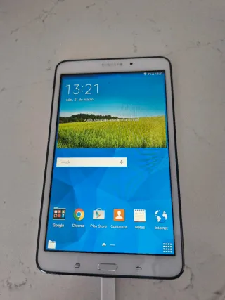 Tablet Samsung Galaxy Tab 3 en color blanco. Tiene instalado Android lineage os. - Pantalla de 10 pulgadas. - Procesador de doble núcleo, ram 1gb - Cámara trasera y frontal. Tiene ranura para microsd Todo funciona perfectamente, pero al tener solo 1gb de ram, no se le puede cargar muchas aplicaciones a la vez.
