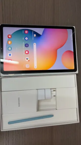 Tablet Samsung Galaxy Tab S6 Lite en color azul, con su S Pen. Me toco en una cesta de un sorteo de mi trabajo pero tengo una mejor y esa no la he usado. Esta aun con el precinto, no se ha abierto aún. El precio no es muy negociable ya que la tablet esta nueva a estrene - Incluye S Pen. - Diseño delgado y ligero.