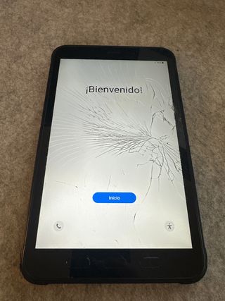Vendo tablet SAMSUNG Galaxy Tab A de 10,5" CON PANTALLA FRACTURADA. Pantalla 1920x1200. Procesador Octacore 1,8GHz Ram 3GB. Memoria interna 32GB expansible mediante SD. Cámara trasera 8MP frontal de 5MP Bateria 7300 mAh. Puerto de carga USB-C. Tiene el cristal de la pantalla fracturada en su esquina inferior izquierda, pero la pantalla se ve perfectamente y la tablet funciona y se carga sin problema. Se entrega completamente reiniciada de fábrica. Ideal si va a ser usada por niños pequeños ya que se les va a caer más de una vez. Se entrega junto a su caja original, una funda tipo libro color azul y un cable de carga.