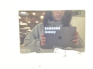 Tablet Samsung en color negro.incluye cargador Venta en persona - Diseño elegante y moderno. - Cámara trasera. - Logo de Samsung visible en la parte trasera.