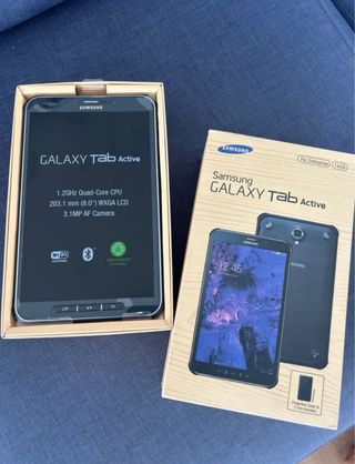 Tablet Samsung Galaxy Tab Active3 en color negro. Incluye Caracteristicas; Modelo SM-T575 - Bluetooth 5.0 - Sistema Operativo Android -Almaceniento 64GB Ampliable 128GB MicroSD - 4 GB de RAM - 4G LTE simCard - Pantalla de 8 pulgadas. -NFC - Resistente al agua y al polvo (IP68) - Bateria de larga duracido 100% - Incluye tablet nueva y cargador nuevo a estrenar - Pantalla en excelente estado. - Pantalla de alta resolucion - Colectividad avanzada