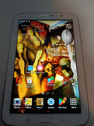 Tablet Samsung Galaxy Tab Pro de 8.4 pulgadas muy bien conservada Modelo: Samsung Galaxy Tab Pro 8.4 Wi-Fi 16 GB (SM-T320) Pantalla: 8.4" con resolución 2560×1600 px, muy buena para vídeos, lectura y navegación Memoria RAM: 2 GB Almacenamiento: 16 GB interno + ranura microSD hasta 64 GB Procesador: Qualcomm Snapdragon 800, quad-core 2.3 GHz – rendimiento suficiente para uso básico Cámaras: trasera 8 MP, frontal 2 MP Incluido cable de carga micro USB. Cargador no. Batería: funciona bien