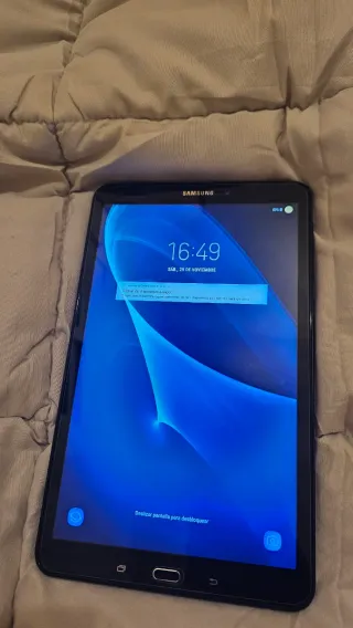 Tablet Samsung Galaxy Tab A del año 2016. Un dispositivo versátil y ligero. - Pantalla de 10,1 pulgadas. - Conectividad Wi-Fi. - Cámara trasera y frontal. - 16 gb de memoria. - Ranura para tarjeta micro SD. Tiene uso pero funciona perfectamente todo, recomendable para usar youtube, netflix, ver pelis o series, jugar y poco más, para multitarea no la recomiendo ya que ya tiene tiempo e iría lenta... Con cristal protector desde el primer día. Regalo tarjeta micro SD de 8gb. Incluye cargador original. Sin caja.