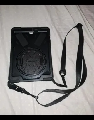Funda protectora para tablet con diseño tipo carcasa y correa. Dura, antigolpes y caídas. Modelo tablet Samsung Galaxy Tab A 9,7”, Samsung Galaxy SM-T550 y T555. Con correa incluida. Está nueva.