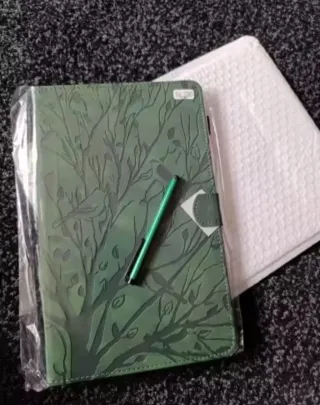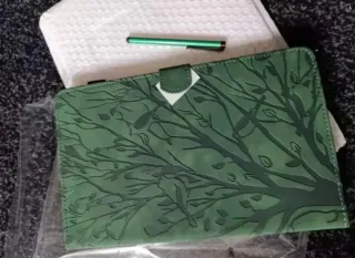 Funda para tablet con un bonito diseño de árbol en relieve. - Color verde. - Diseño de árbol con pájaro. - Incluye lápiz táctil.