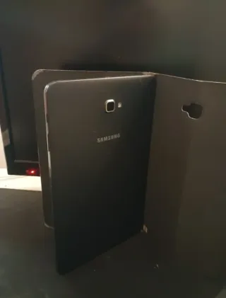 Tablet Samsung Galaxy Tab A6 en color negro. - Pantalla de 10.1 pulgadas (la más grande de ese modelo) - Procesador Quad-Core. - 2GB de RAM. - 32GB de almacenamiento interno. -7300 mAh -Incluye funda de la tablet original La parte trasera de la tablet está imantada para colocar la funda rápidamente Las fotos de la imagen están hechas desde el móvil por eso las marcas en la pantalla. En la parte delantera (la pantalla) tiene varios rayones pero poco visibles, no afectan al funcionamiento de la pantalla, se sigue viendo bastante bien PRECIO NEGOCIABLE