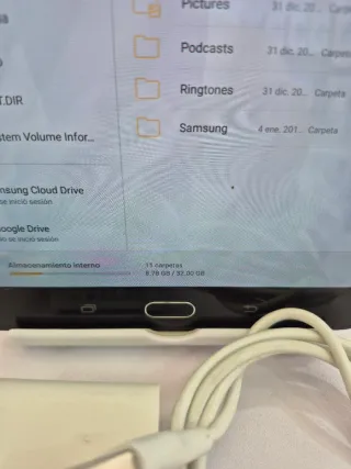 Tablet Samsung Galaxy Tab S2 en color blanco. Con su caja , manual , el pin extractor de tarjeta y incluye una funda de protección. Es muy ligera para el tamaño que tiene. -(cargador no incluido) NO ENCIENDE NOSE PORQUE DE HAY SU PRECIO. Deberá ser algo de software porque nunca sufrió ninguna caída ni golpe. NUEVA VALE MÁS DE 200€ adjunto captura de la evidencia.