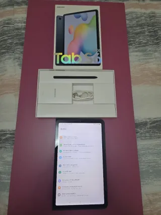 Tablet Samsung Galaxy Tab S6 Lite en azul, con su S Pen. Incluye: -S pen - Protector de pantalla ya puesto y uno extra. - Dos fundas. - Cable orginial de carga. Ha sido usada pocas veces y con un uso muy basico de estudiante.