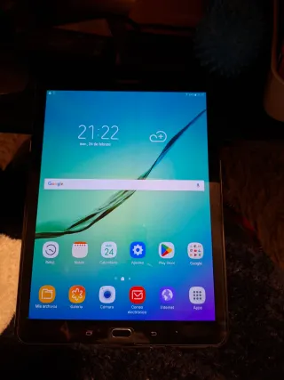 Tablet Samsung Galaxy Tab S de 8,4" 16GB Y 3 GB DE RAM Modelo SM-T705 Vale de teléfono entra una SIM Tiene un Toke en la esquina superior derecha que no afecta en nada a su funcionamiento . Varios puntos de desgaste . La pantalla está perfecta , tiene protector de pantalla y está bien , notarás algún rayita pero no es la pantalla es en el protector . Ideal para iniciarse Va muy bien para jugar por el buen procesador que tiene . va con cargador