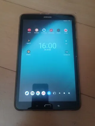 Tableta Samsung, modelo SM-T550. RAM de 1.5 GB, almacenamiento de 16 GB (ampliables mediante tarjeta microSD). Android 7.1.1. Estéticamente bien conservada. Incluye funda (algo desgastada) y caja. NO incluye cargador. Se envía!!