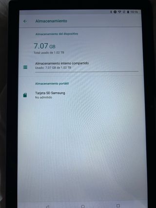 Tablet Samsung P70 con 7.07 GB de almacenamiento interno. - Almacenamiento interno compartido: 7.07 GB de 1.02 TB - Acepta tarjeta sim