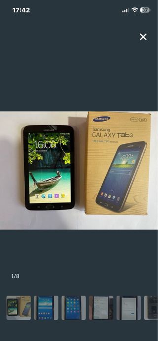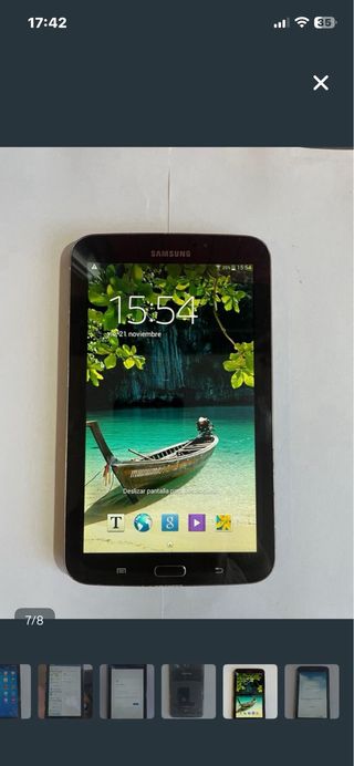 Descripción ¡Ideal para coleccionistas, niños o tareas básicas! Vendo Samsung Galaxy Tab 3 de 7 pulgadas en excelente estado cosmético. La tablet ha sido muy bien cuidada, la pantalla no tiene roturas y el cuerpo apenas presenta marcas de uso (ver fotos). Características principales: • Modelo: SM-T210 (Versión Wi-Fi). • Almacenamiento: 8GB (ampliable mediante tarjeta MicroSD). • Pantalla: 7.0 pulgadas, tamaño ideal para lectura o viajes. • Estado: Funcionando correctamente. Se entrega restaurada de fábrica. • Extras: Incluye su caja original. A tener en cuenta: Es un modelo con unos años, por lo que la versión de Android (4.4.2)