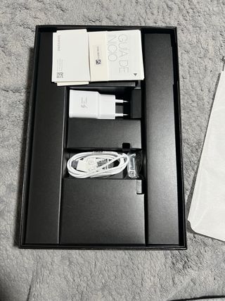 Tablet 10.1 pulgadas. Incluye cargador original. Guía rápida. Funda gris original. Accesorio para leer pendrives incluido. Protector de pantalla desde el primer día.