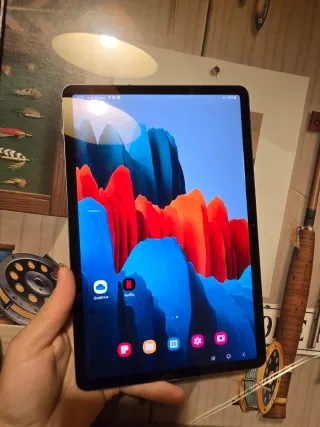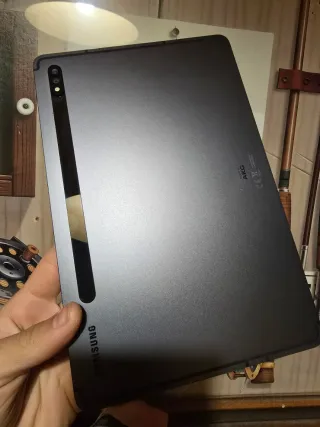 Tablet Samsung Tab S7 Plus en perfecto estado. Incluye teclado magnetico original, funda magnetica original y lápiz óptico original. Está en muy buen estado, se entrega con protector puesto desde el primer día con efecto mate (costó 39€) y su cable. La caja creo que la perdí en la mudanza. El teclado y su funda magnética costaron 199€ en tienda oficial. Muy poco uso