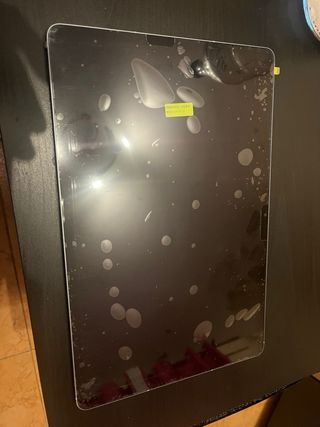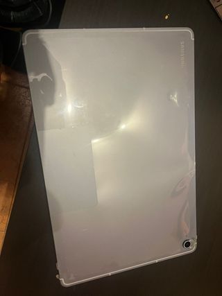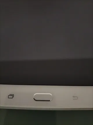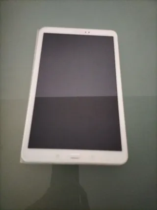 Tablet Samsung Galaxy blanca en buen estado, aunque con la pantalla dañada, no enciende aunque reacciona cuando la enchufas. Incluye funda protectora negra. - Pantalla con arañazos. - Funda con señales de uso. - Perfecta para reparar o usar piezas.