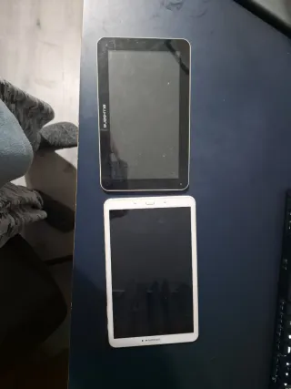 Se vende un pack de dos tablets que no encienden. - Una tablet es de color negro. - La otra tablet es de color blanco.