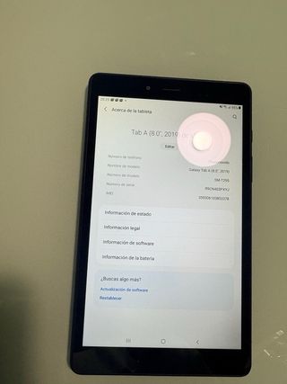 El precio mostrado es el de venta en nuestra tienda. El precio de este producto en nuestra página web puede ser diferente. Este artículo está disponible en nuestra tienda de Mataró. tablet pc samsung galaxy tab a8 32gb (2019) CC072_E429631_0 es un objeto que se ofrece en estado muy bueno. Todos nuestros productos cuentan con garantía de 3 años y un plazo de devolución de 14 días. Capacidad: 32 | Bluetooth: Si | Gps: Si | Operador: Libre | 3g: Wifi | Sistema operativo: Android | Caja original: No | Informacion adicional: Revisar imágenes para accesorios incluidos. revisar el estado de uso en las imágenes. | Lapiz digital: N