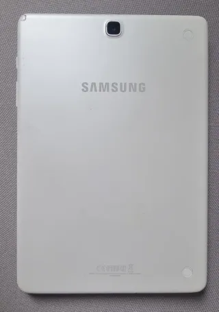 Tablet Samsung Galaxy Tab A SM-T555 en color blanco. Funciona correctamente. Pantalla rota. - Pantalla de 9.7 pulgadas. - Conectividad Wi-Fi y datos móviles (LTE). - Cámara trasera y frontal.