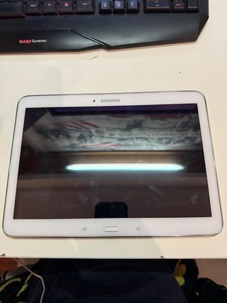 Tablet Samsung Galaxy Tab A 10.1 4G (2016) en color blanco. Modelo SM-T585 Medidas alto 26 cm x 15.5 cm de ancho Funciona perfectamente y la batería carga siempre al 100%, y dura un montón. - Pantalla de 10.1 pulgadas. - Conectividad 4G. - Incluye cargador y cable USB.