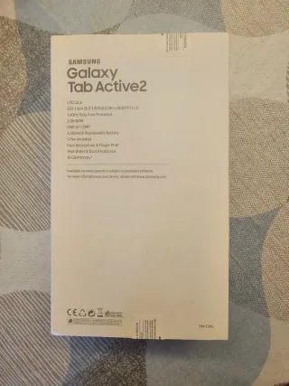 Dos disponibles a 110€ cada una. Tablet Samsung Galaxy Tab Active2 LTE con S Pen incluido. Ideal para uso profesional y en exteriores. - Pantalla TFT LCD de 8.0 WXGA (1280 x 800). - Procesador Octa Core a 1.6GHz. - 3 GB de RAM. - Cámara trasera de 8MP AF y frontal de 5MP. - Batería reemplazable de 4,450mAh. - Reconocimiento facial y de huella dactilar. - Resistencia al agua y al polvo IP68. - 16 GB de memoria interna.