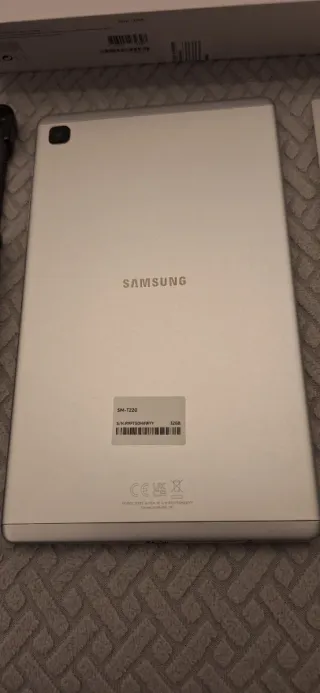 Tablet Samsung Galaxy Tab A7 Lite en color plateado. - RAM 3Gb - Almacenamiento 32Gb - Pantalla 8,7 pulgadas - USB tipo C Incluye: - Cargador con cable - Funda negra con gatitos - Cristal templado 9H a estrenar más el que lleva puesto - Caja original de la tablet