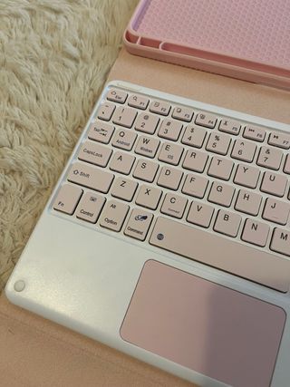 Funda con teclado integrado para Samsung S6 Lite en color rosa. Protege tu tablet y escribe cómodamente. - Diseño elegante en color rosa. - Teclado QWERTY integrado. - Trackpad para mayor funcionalidad.